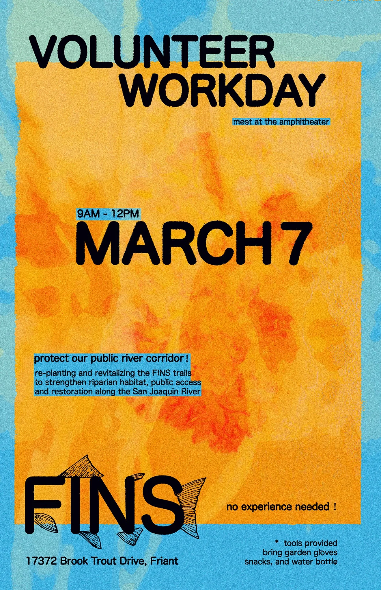 Stewardship and restoration of the San Joaquin River riparian edge. Help improve the native trail corridor and native gardens adjacent to the San Joaquin Hatchery. This is a critical public access space along the San Joaquin River. This site combines interpretive trails, picnic areas, California native plant displays, and riverfront habitat next to a working hatchery that produces trout and salmon and is open to the public.