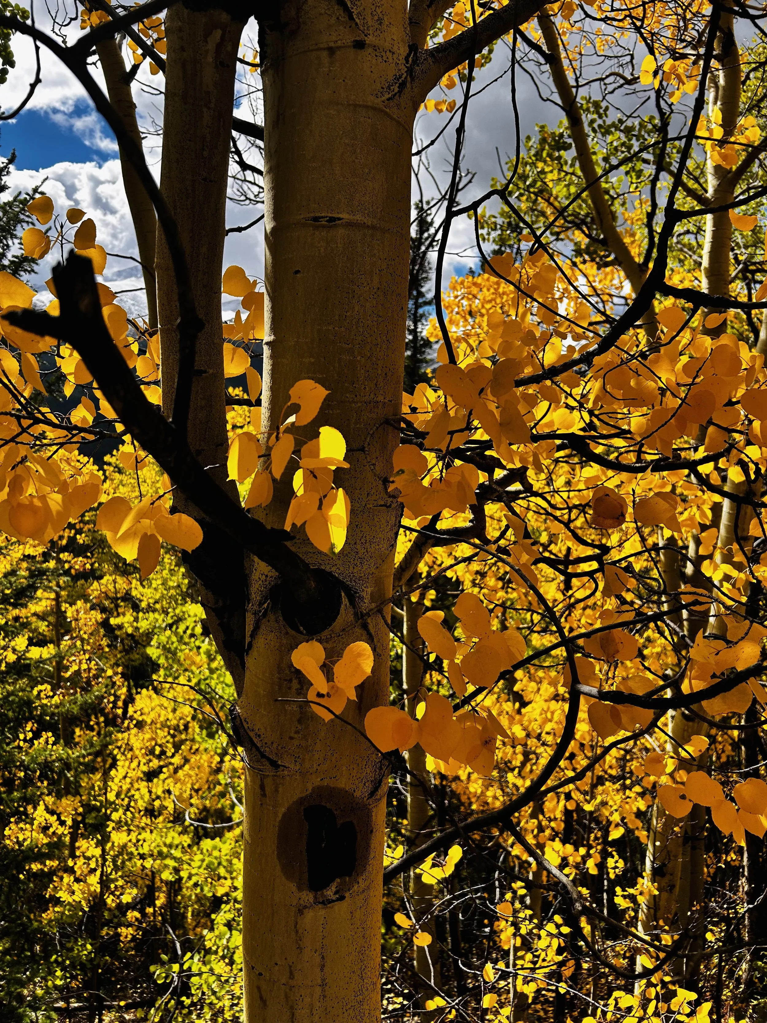 Quaking aspen are one of the most ecologically influential and widely distributed trees in North America, ranging from Alaska to Mexico and occupying elevations across the Sierra Nevada from montane foothills to subalpine basins. Aspen often exist as clonal organisms connected underground by a shared root system, producing genetically identical stems (ramets) that can live for thousands of years. This strategy allows rapid recovery after disturbances like fire or avalanche. In the central and southern Sierra, aspen occupies moist meadow margins, north-facing slopes, and areas with persistent moisture.