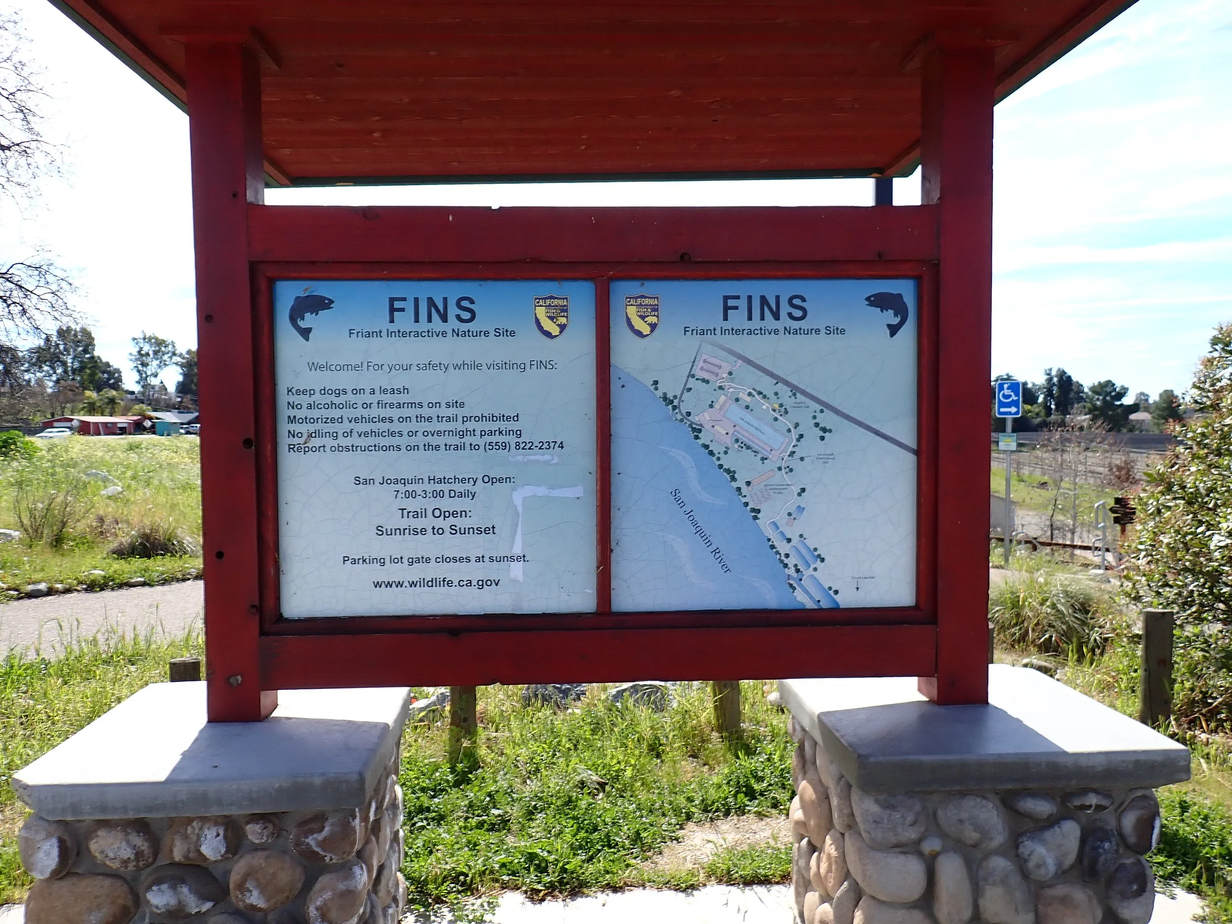 The Friant Interactive Nature Site (FINS) sits on the San Joaquin River just below Friant Dam. The interactive trail winds around a fish hatchery built in the early 1950s under what was then the California Department of Fish and Game. It forms a segment of the San Joaquin River Parkway, a trail system that spans the river edge, and also neighbors the brand new Salmon Conservation and Research Facility.