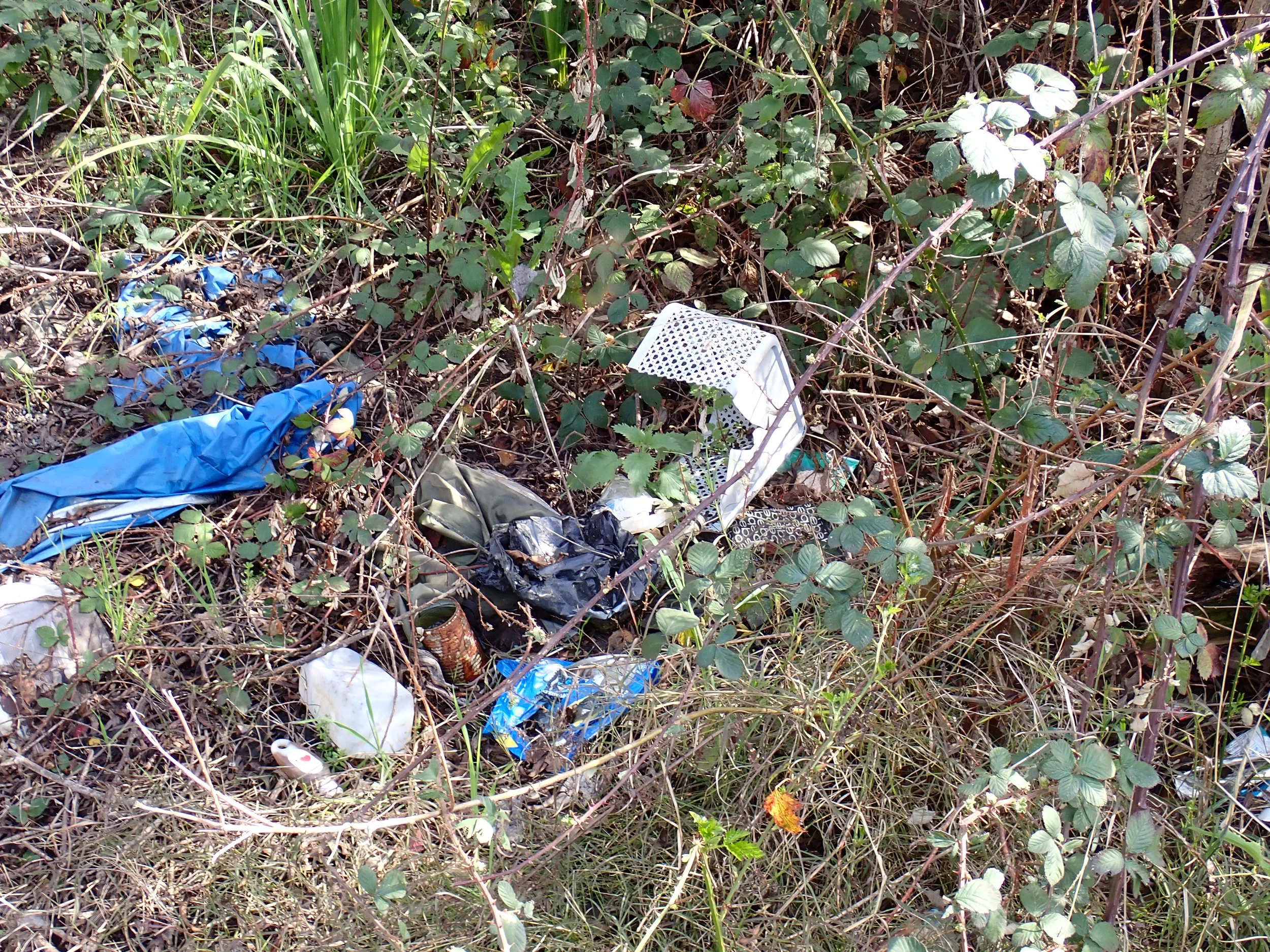 Fig 31. Invasive blackberry (Rubus sp.) overgrowing an invasive garbage pile along the river